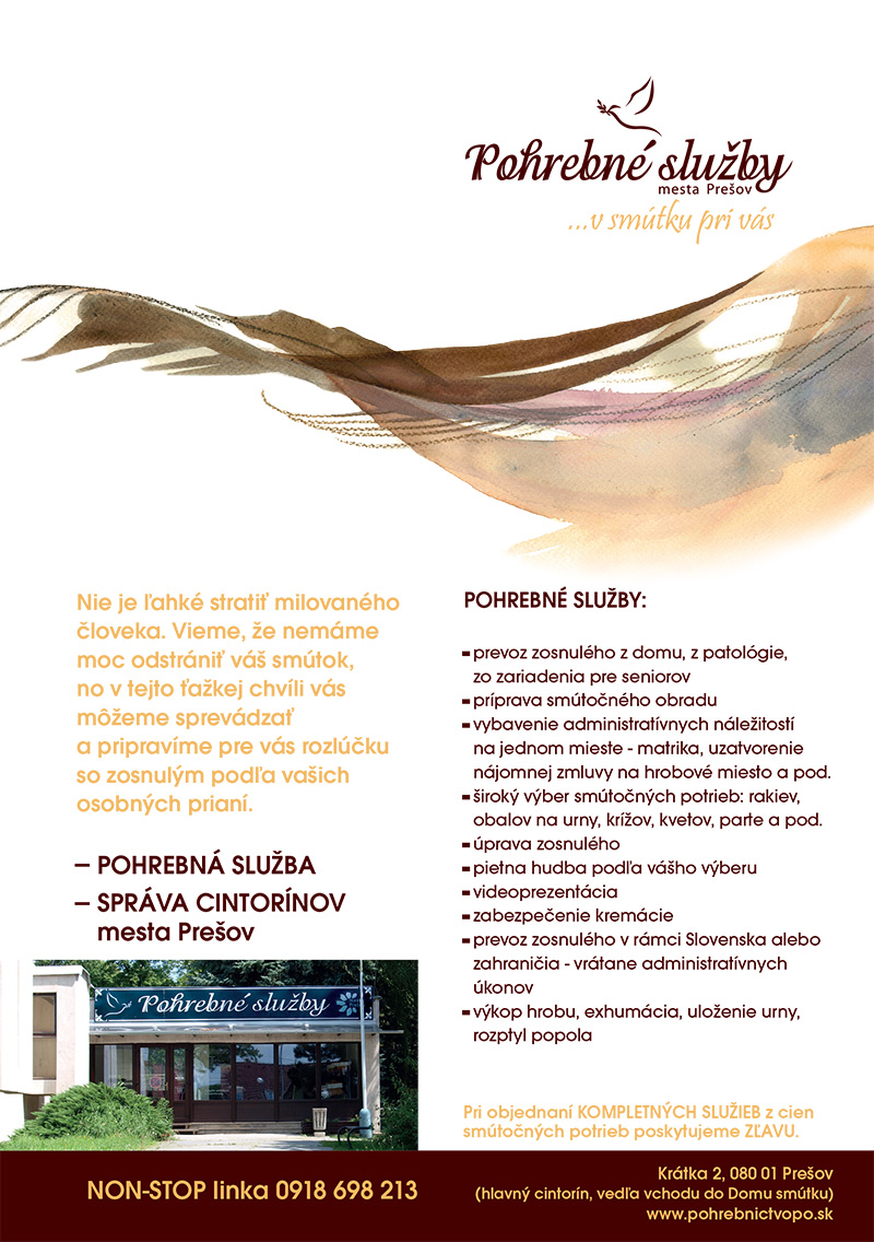 Všetky nami ponúkané služby si môžete objednať v kancelárii Pohrebnej služby mesta Prešov